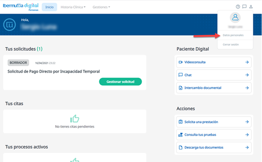 En el momento de darte de alta en Ibermutua Digital, deberás elegir tu contraseña personal. No obstante, en todo momento dispones de la posibilidad de volver a modificarla. Para ello, debes acceder a la opción de Datos Personales desde el icono