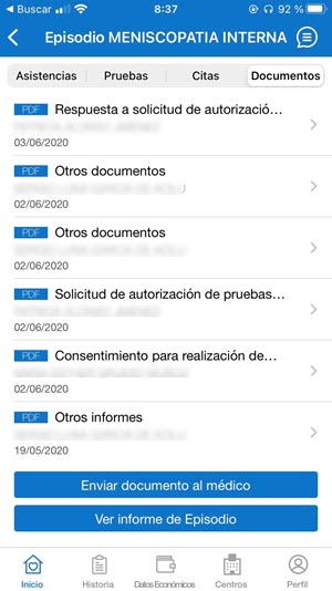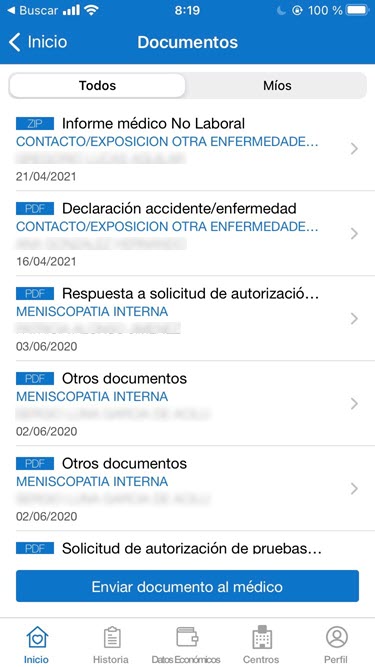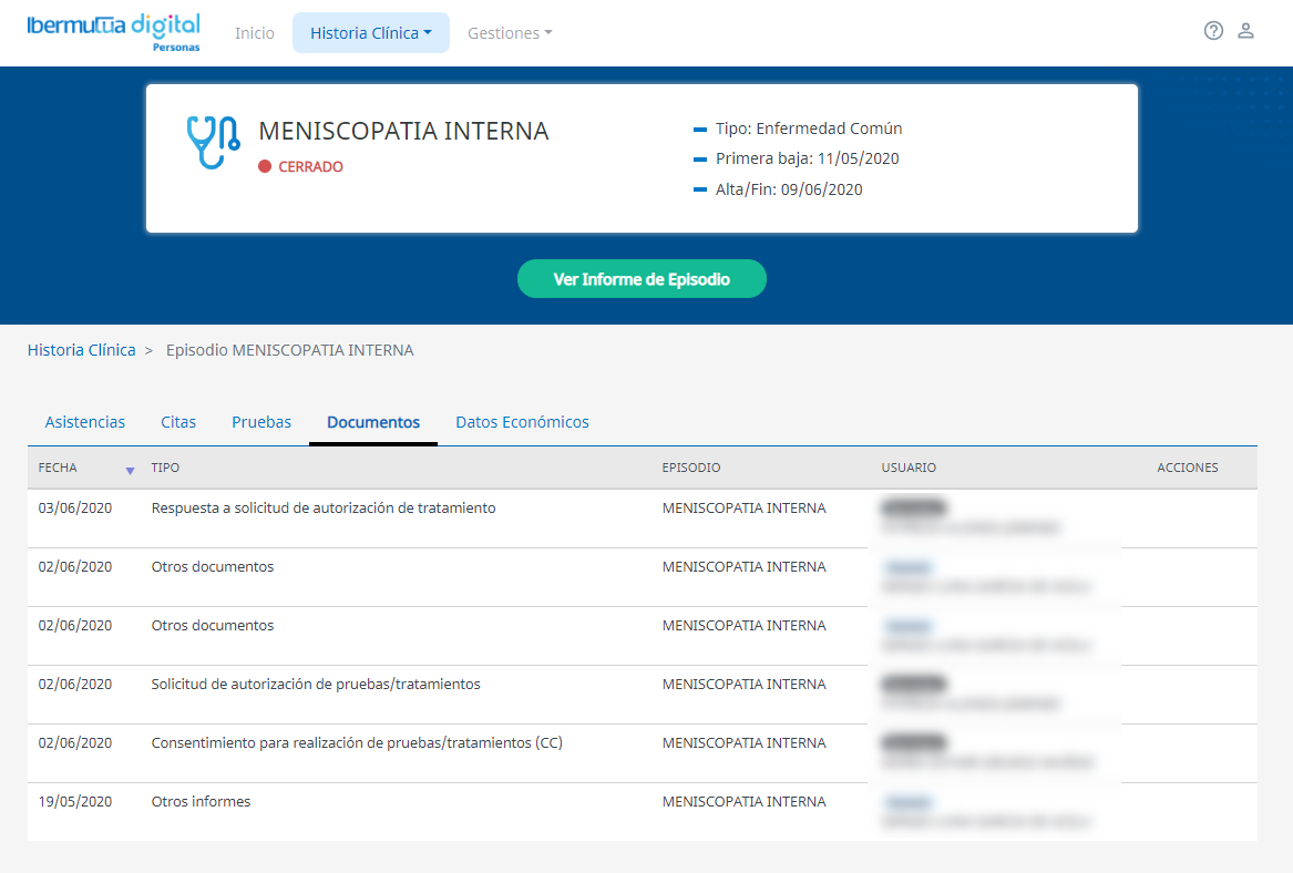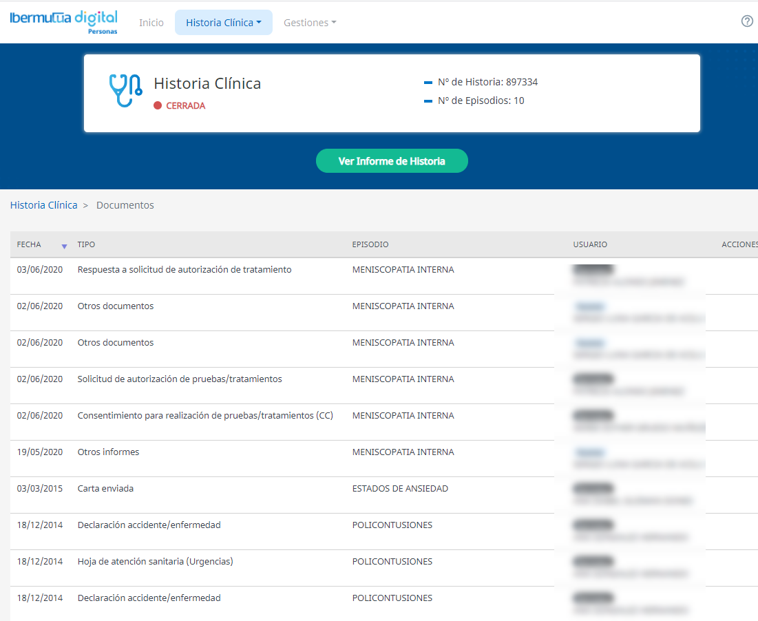 Se puede acceder a visualizar toda la documentación administrativa generada a lo largo de toda la Historia Clínica con Ibermutua.