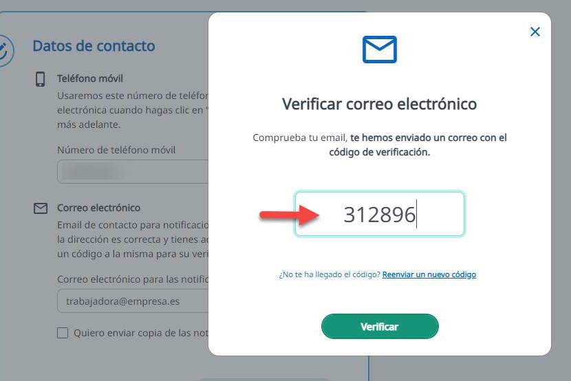 - Introduce el código de verificación recibido en la pantalla de Ibermutua Digital para realizar la verificación.