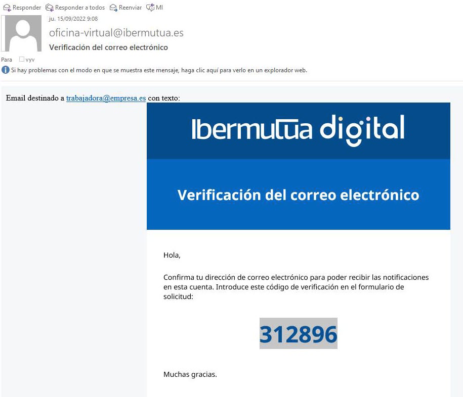 Revisa si el correo ha podido desviarse a alguna carpeta de spam (o correo no deseado) y, en ese caso, valida el correo de la Oficina Virtual de Ibermutua como remitente seguro para que futuras comunicaciones no se puedan perder en dicha carpeta.