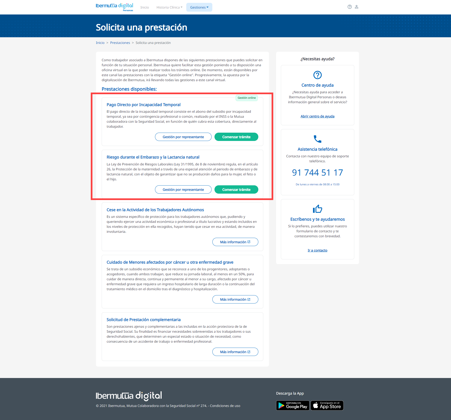 En este momento está disponible la gestión digital de las siguientes prestaciones: