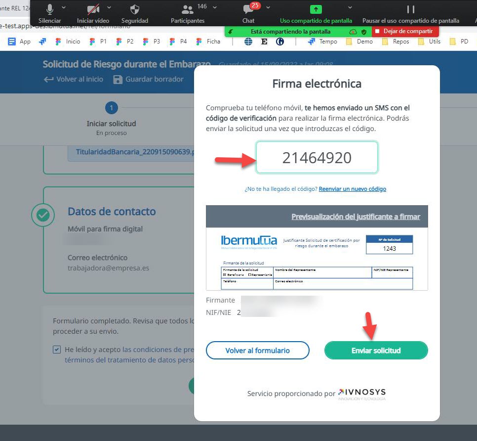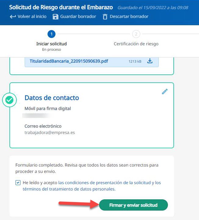 Iniciar el proceso de firma y envío de la solicitud