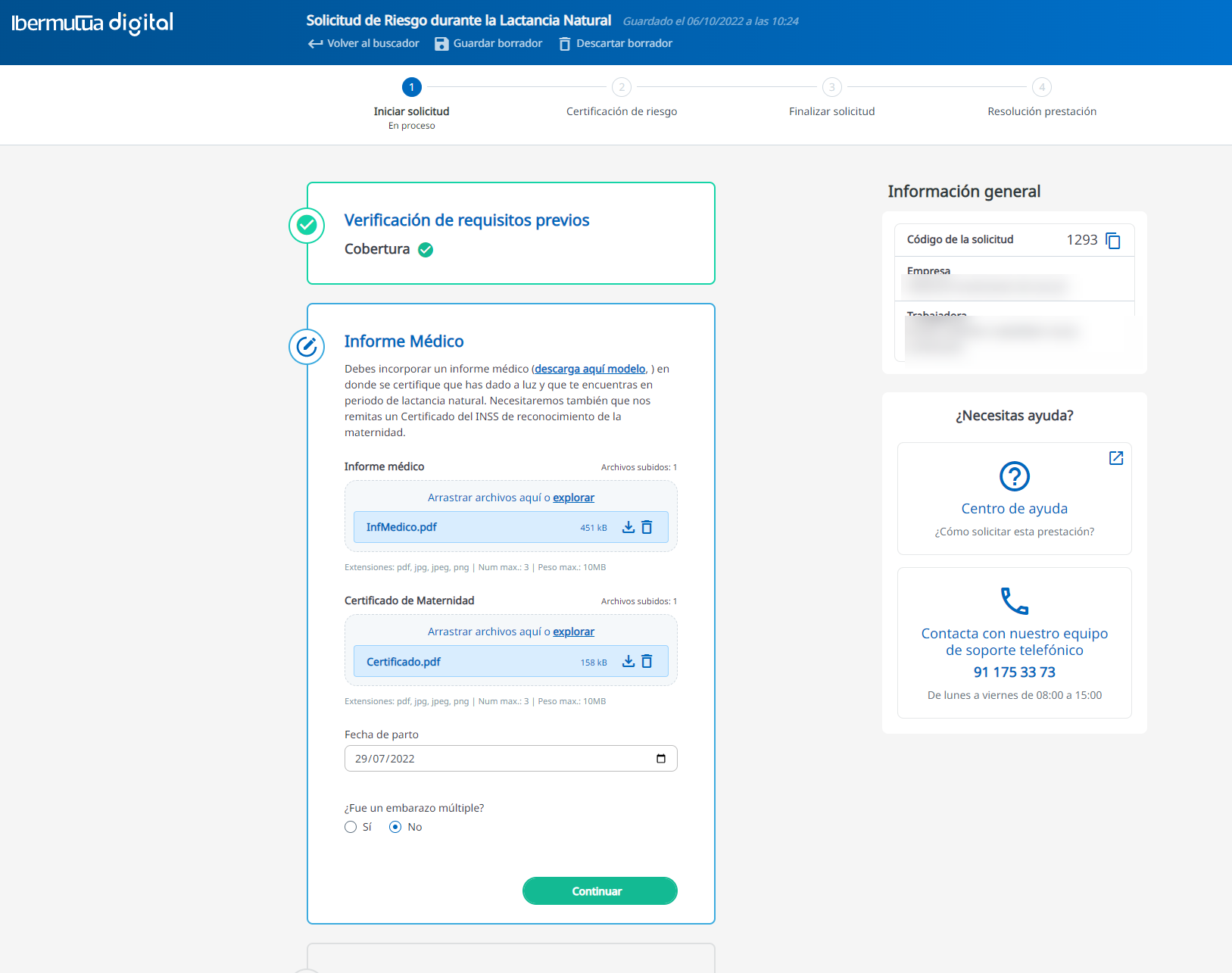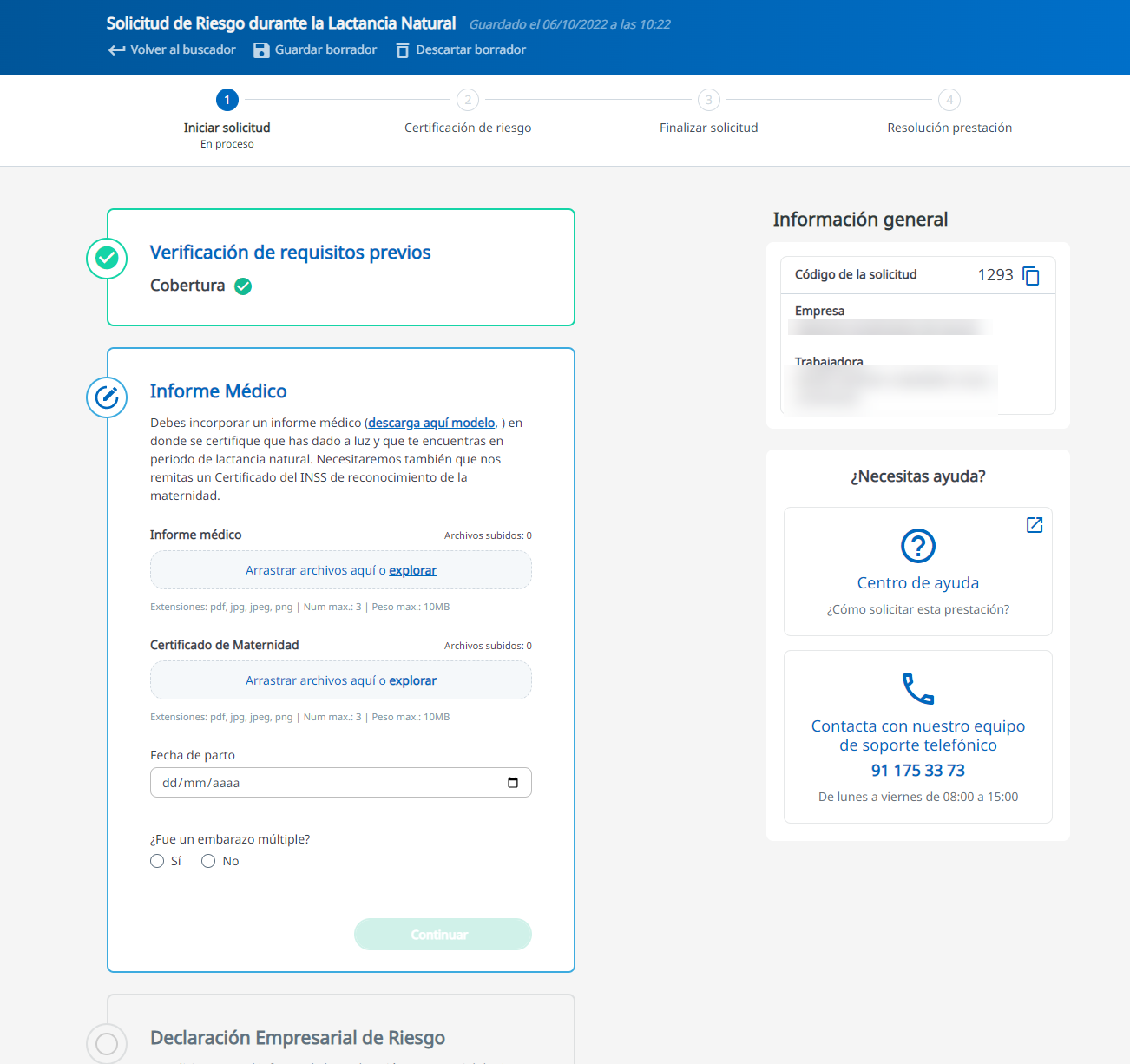 Solicitud de la prestación por Riesgo durante la Lactancia