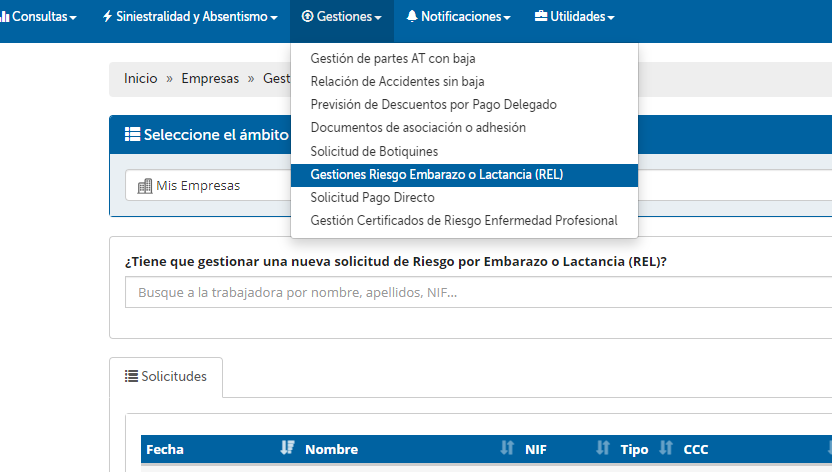 Una de las opciones para la solicitud de la prestación por Riesgo durante el Embarazo y Lactancia es que la tramitación de la solicitud sea realizada por la propia empresa/asesoría en nombre de la trabajadora. A continuación se explican los pasos para ello: