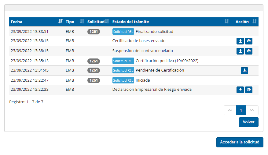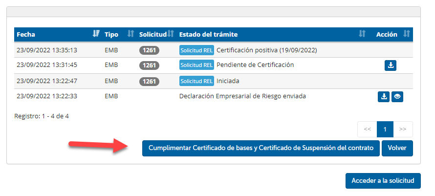 Con ambos certificados generados, se deberá volver a acceder a la solicitud desde la Oficina Virtual para finalizar el envío.