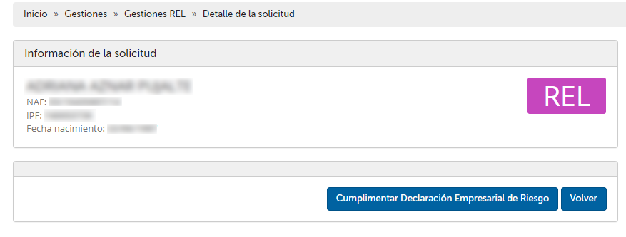 A continuación, se buscará a la trabajadora para la que se quiere iniciar la solicitud de un nuevo REL.