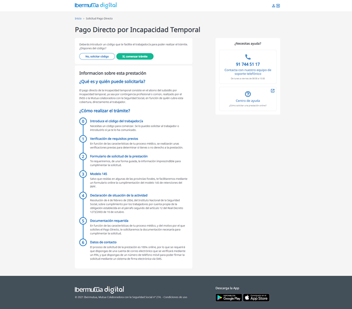 - Nueva pantalla informativa de los pasos para la solicitud de la prestación para el Representante.