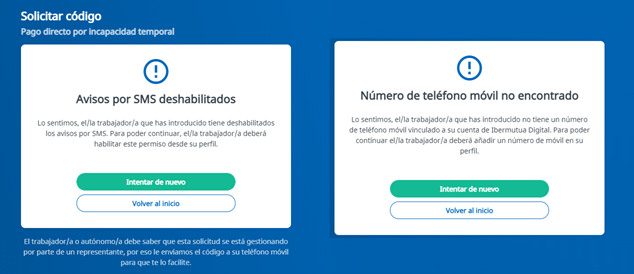 - Nuevos mensajes de aviso en caso de no estar registrado el teléfono del trabajador o no tener autorización para envío de SMS.